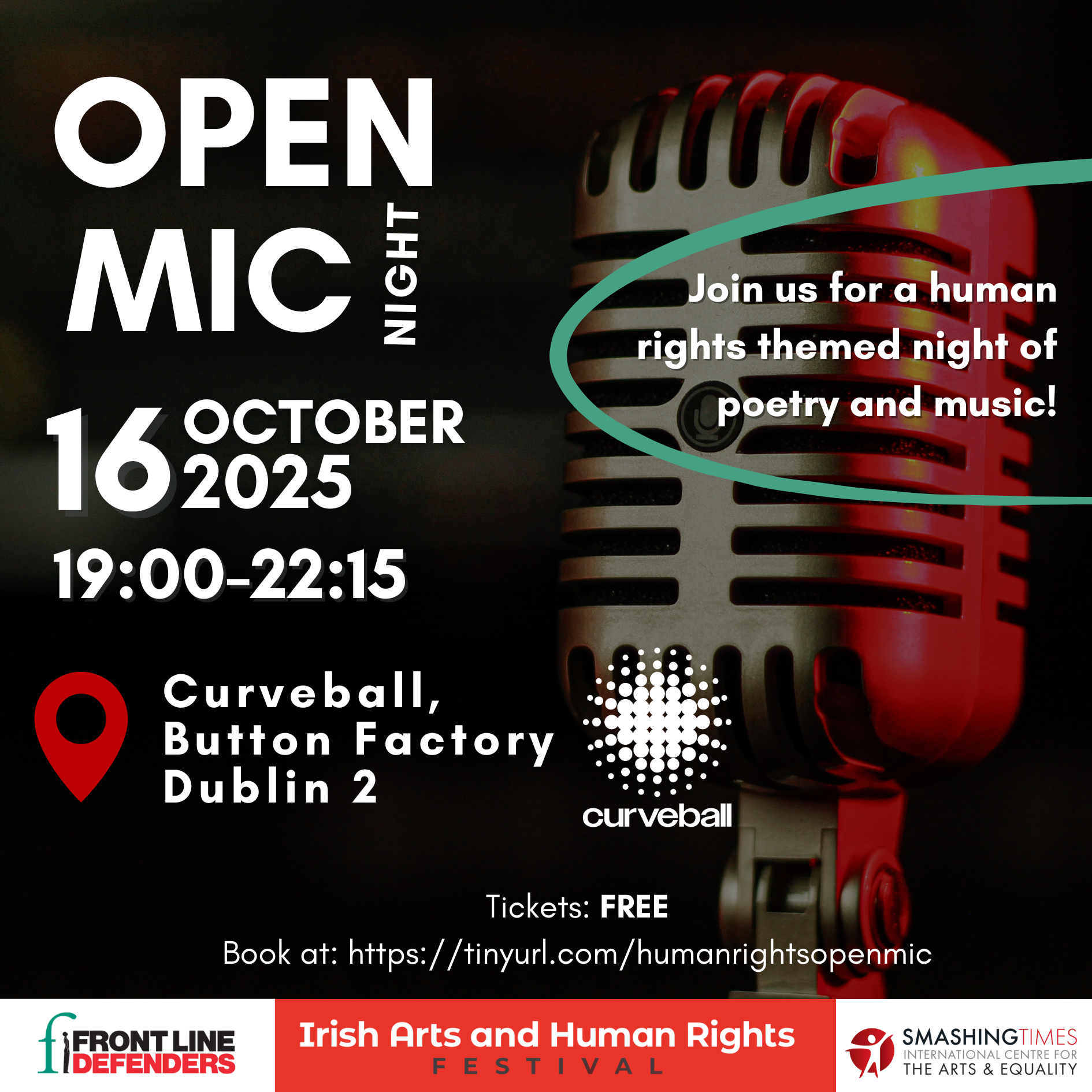 Open mic night is an evening featuring live poetry and music relating to themes of social issues, human rights, social justice, and solidarity presented at Curve Ball, Button Factory, Curved Street, Temple Bar, Dublin on Thursday 16 October 2025, 7-10.30pm. The evening features special guests presenting curated poetry and music and is open to anyone who would like to sign up to perform.