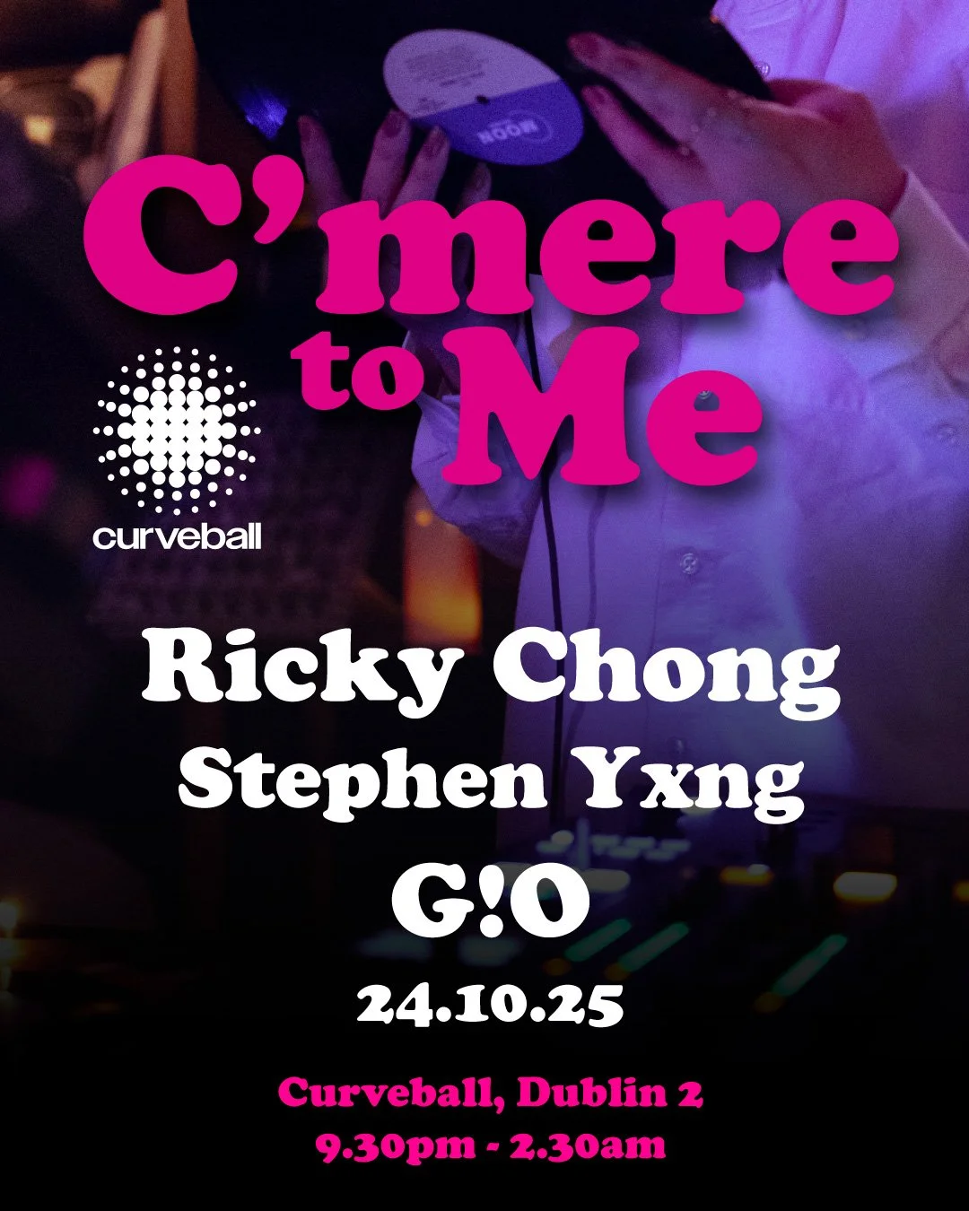 You asked, we listened. C’mere to Me DJ collective is back. Following our sold out all about disco show in Hens Teeth, we’re doing it all again in Button Factory's newly renovated space Curveball on October 24th. This lineup is sensational with Ricky Chong, Stephen Yxng and G!O spinning sweet disco & house vibrations into the wee hours. Grab your mates. Let's Dance.