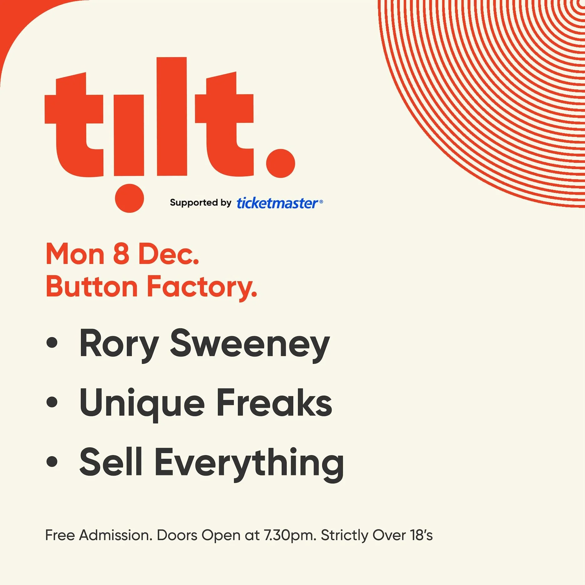 Tilt #37 takes place on Monday December 8th in The Button Factory featuring three talented & unique acts - Rory Sweeney, Unique Freaks and Sell Everything.