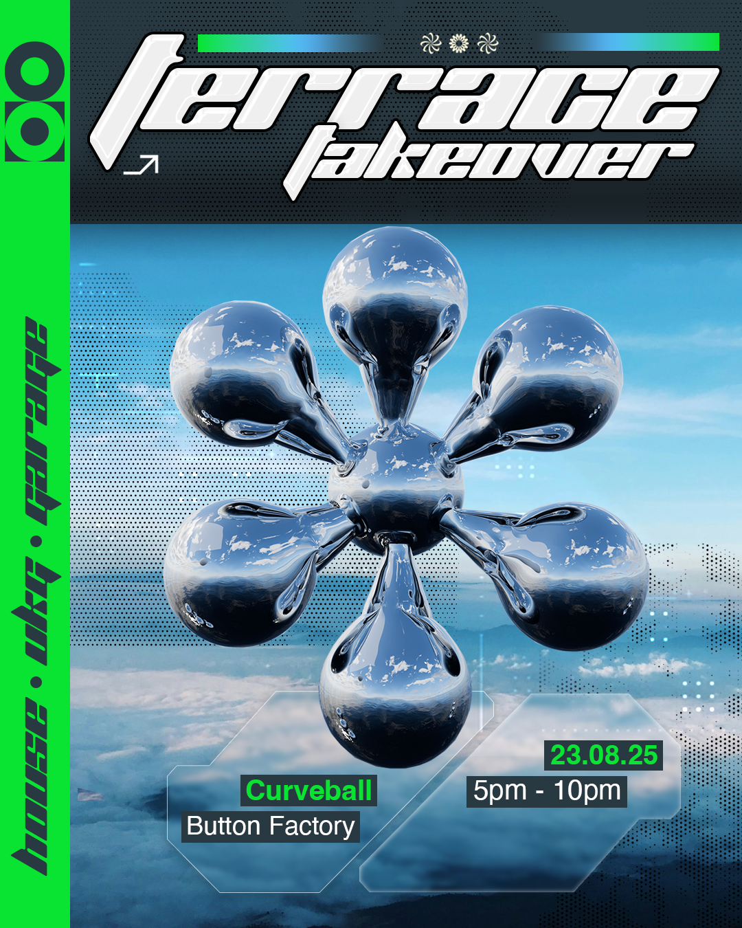 CURVEBALL: Hybrid Events Terrace Party Saturday 23 August 2025 17:00 22:00 Button Factory Curved Street Dublin, County Dublin, Ireland (map) Google Calendar ICS TICKETS Hybrid Events takes on Dublins newest terrace Venue Curveball for a unique small capacity day party. Expect house & garage tunes from homegrown artists with Hybrid's usual emphasis on stage design & visuals!